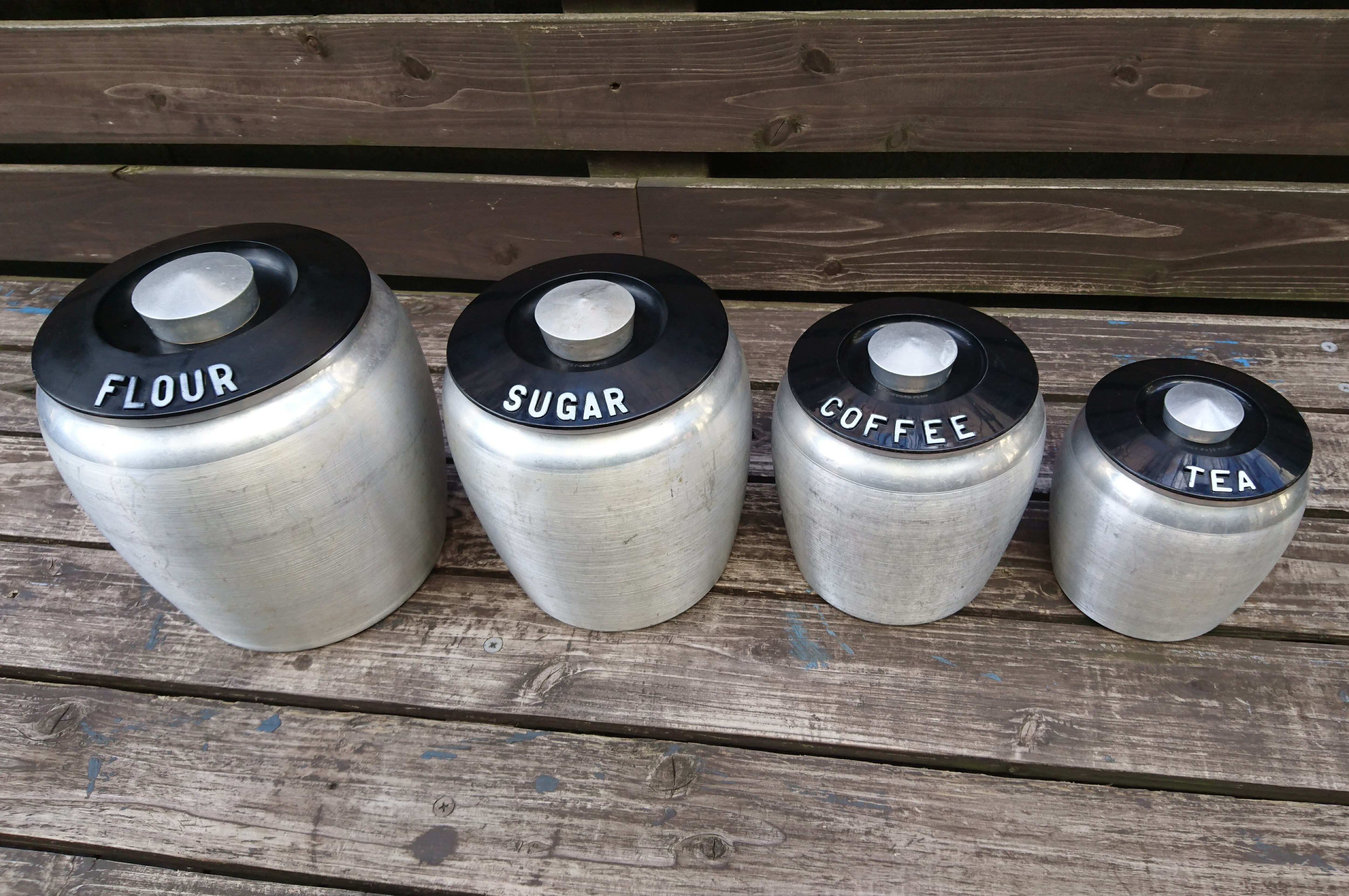 Flour(小麦粉) Sugar(砂糖) Coffee(コーヒー)Tea(紅茶)の4点セットです。