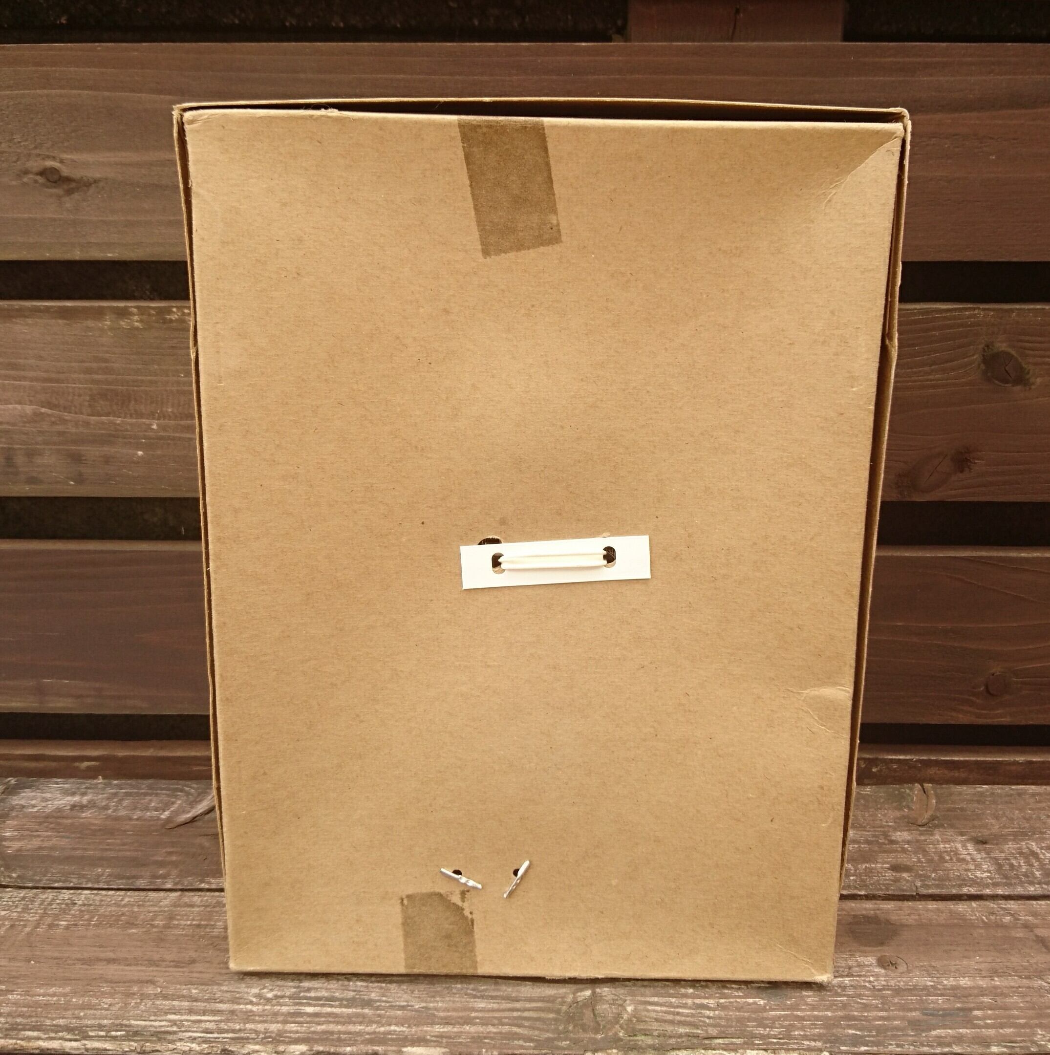 年代相応の汚れはあるでしょうが、針金で体、ゴムで足が箱と固定されています。顔には髪の毛用のネットが被さってます。箱から一度も外されたことがないでしょう。