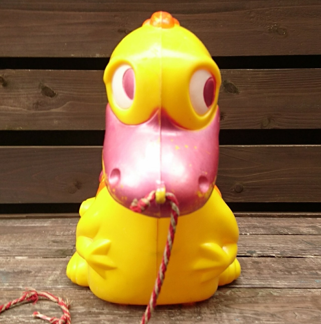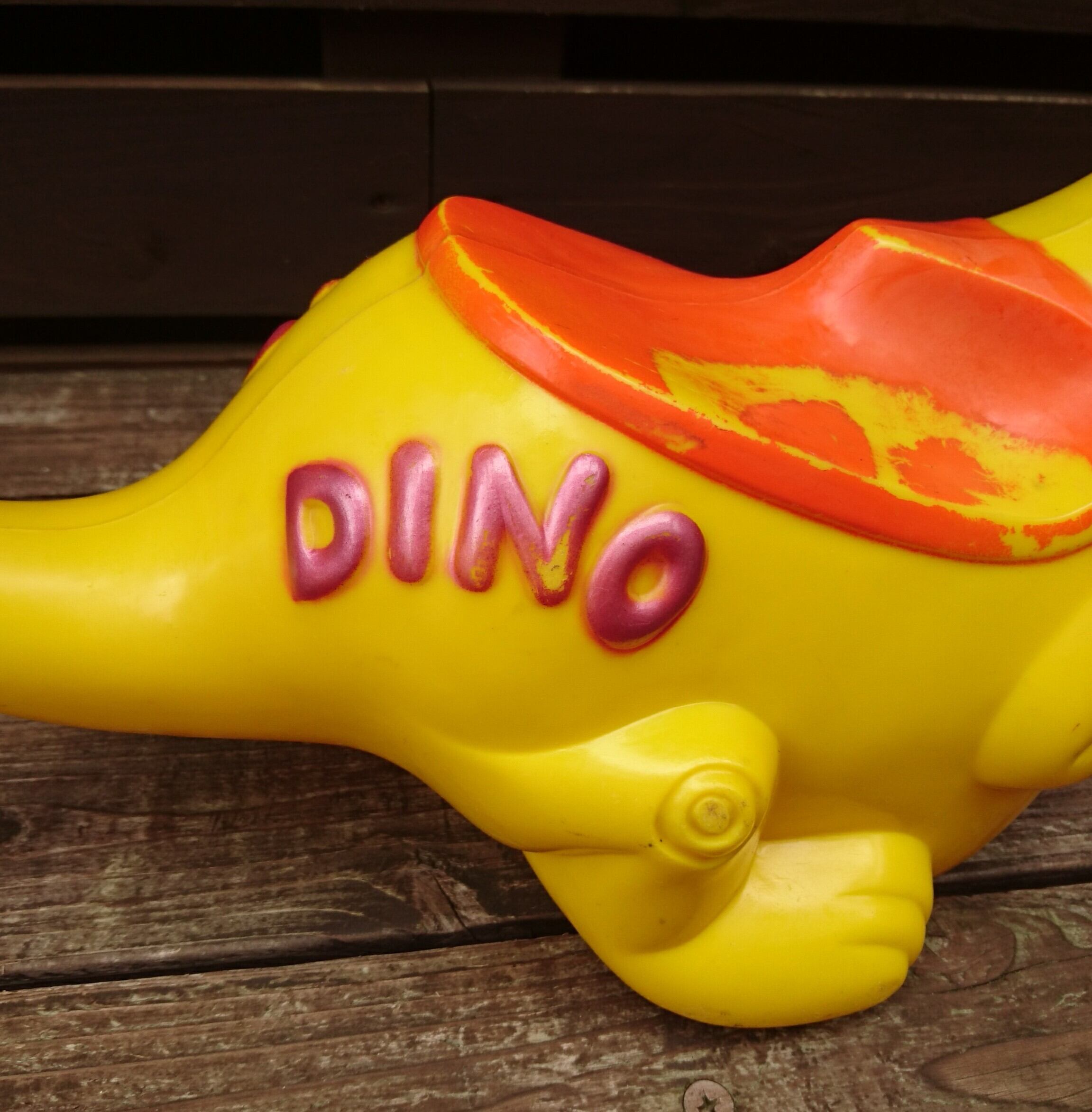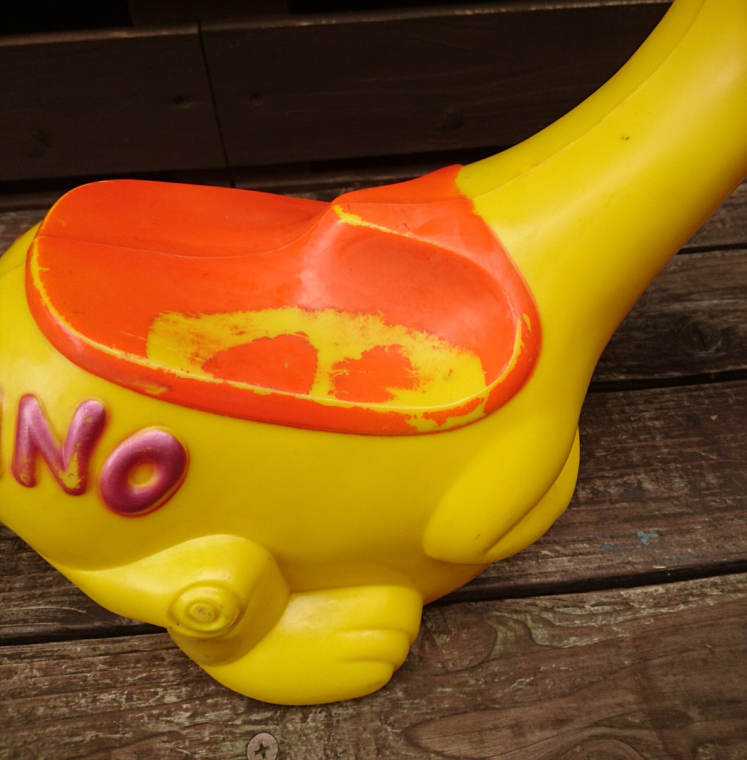 1961年 IDEAL社製  ハンナバーベラ作品「フリントストーン」の一家のペット恐竜「ディノ 」のライドオンストローラーになります。