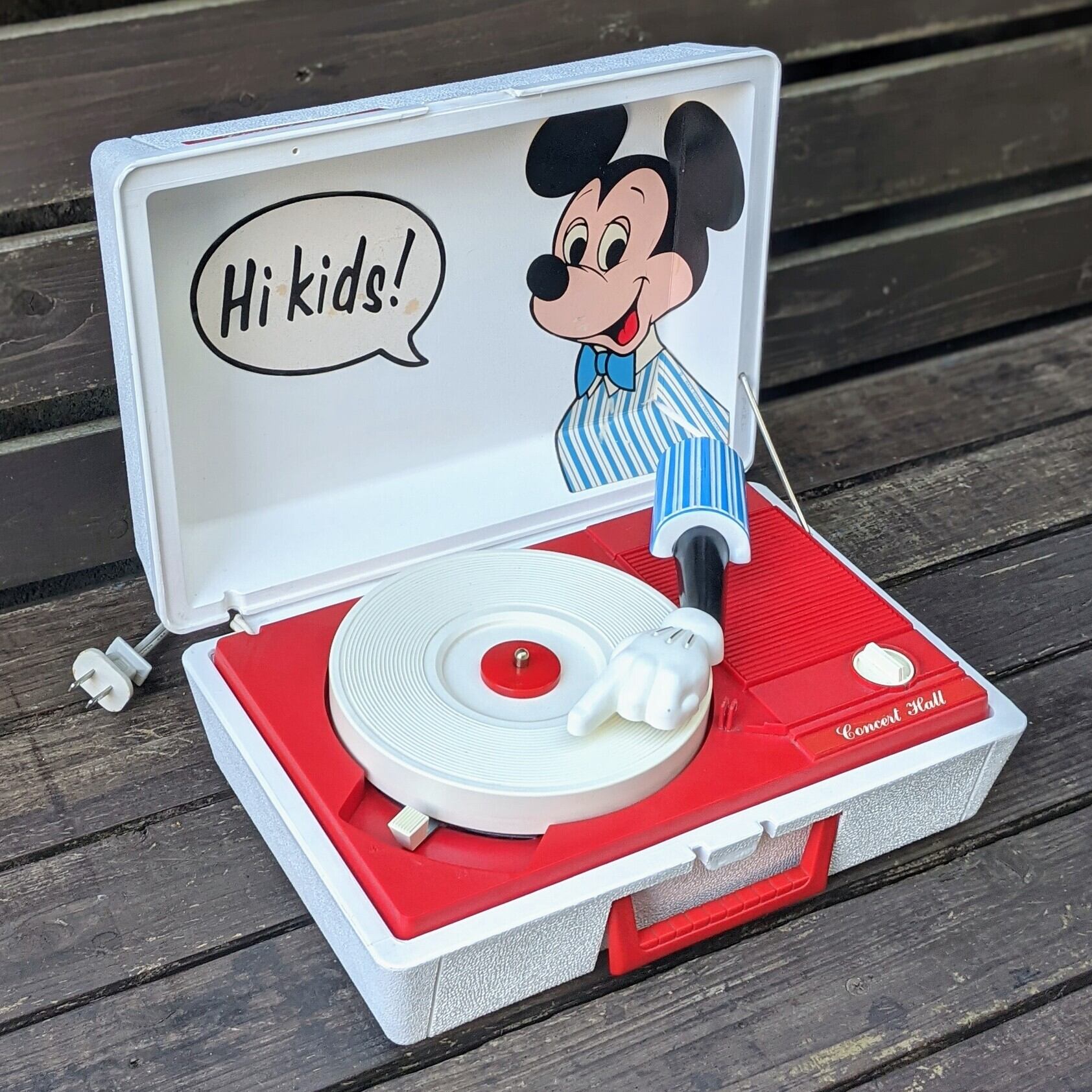 60年代製造のディズニーキャラクター「ミッキーマウス」のポータブルレコードプレーヤーになります。